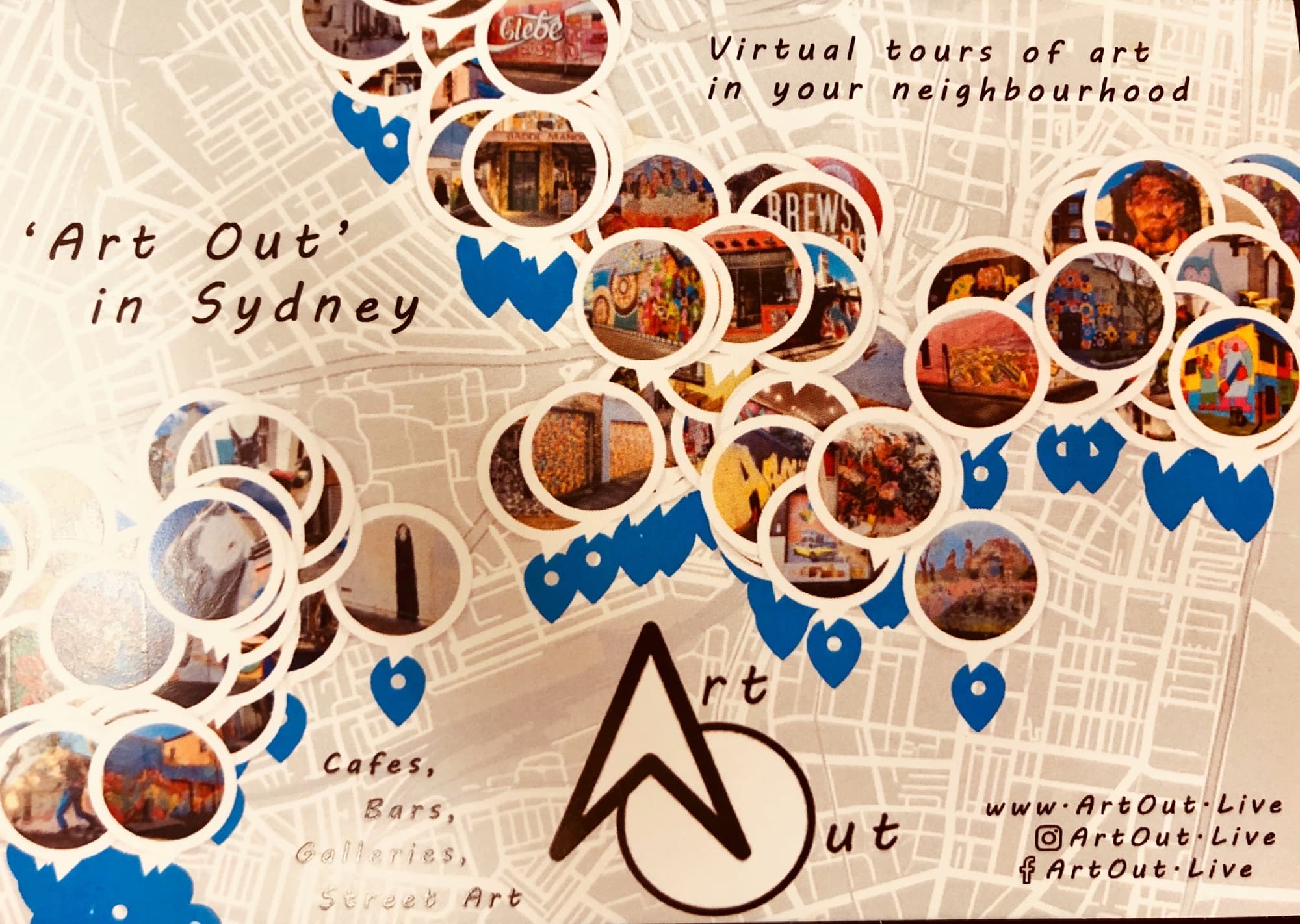 Art Out is a new online platform. It includes virtual, interactive tours of places in the inner west and city featuring art. Places such as cafes, street art, bars, galleries. So whether you want to stroll around outside and check out some awesome murals, or head to a bar with some great art, or maybe you don’t even want to leave the comfort of your own couch! Art Out is here to help.
