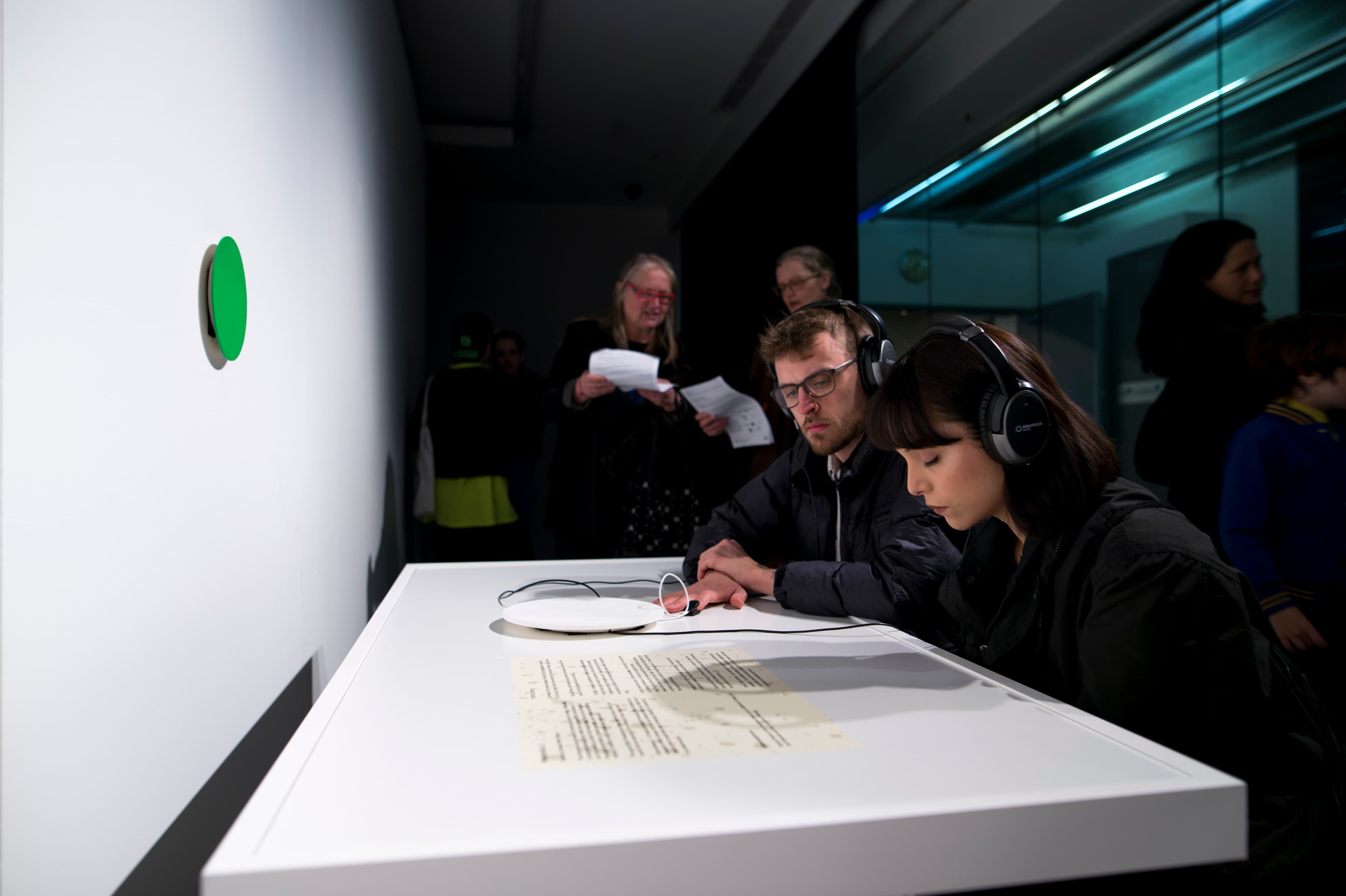 Image: Supplied, George Poonkhin Khut, Mettamatics 1 & 2, installation view,Sounding the Future, UTS Gallery, 2017. Photo: UTS Gallery.