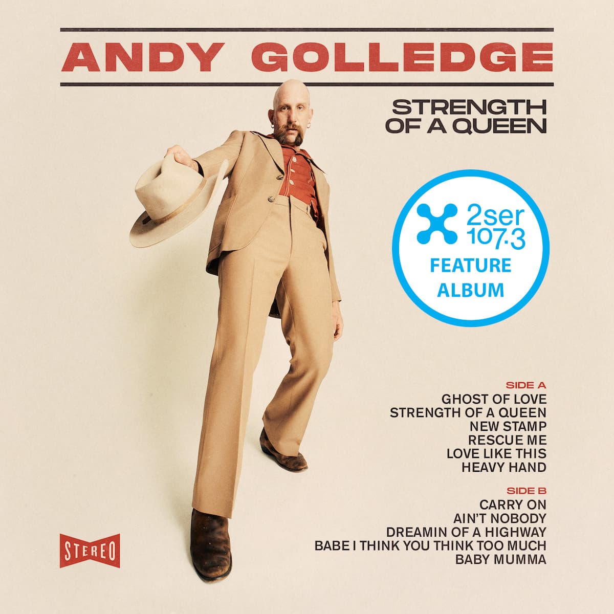 Golledge is an artist that (along with the band) one could readily describe as a lifer, having been playing shows in the Inner West for the better part of 15 years prior to this debut. He already had a reputation for delivering live shows that are known for energy and drawing a local cult-like following (and the album is loaded with references to Sydney locations). In fact, many of the songs contained on Strength of a Queen and are finally finding a proper recording here after evolving as staples of the live show over many years. His musical partnership with singer/songwriter Caitlin Harnett (of Caitlin Harnett and The Pony Boys, a former 2SER Feature Artist) further honed and developed the groups sound as their following has grown.