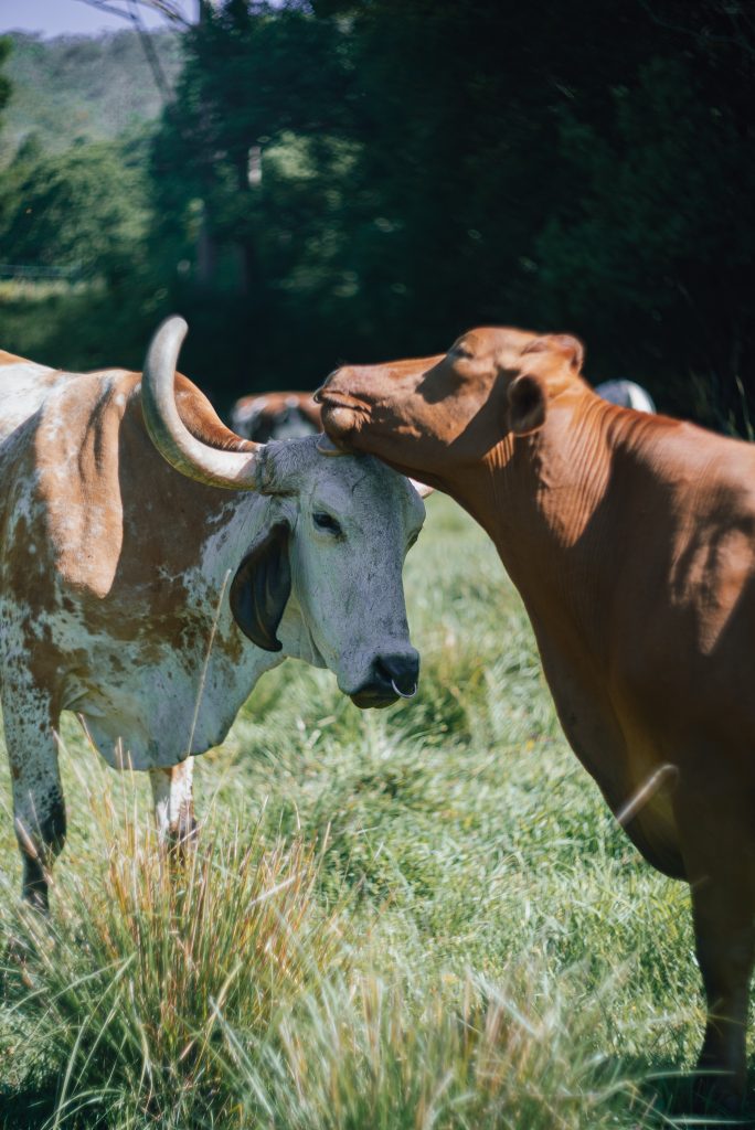 You find a mix of cow breeds on the farm and majority of them live to about 20 years old. Cattle kept and bred for their milk and meat live to 4-6 years old, so the cows at Krishna Village are living life to the fullest and it’s beautiful to see. Because they live for so long they have to be comfortable with humans, so Krishna Village retreat goers and vollunteers are taught safe ways to handle the cows and bulls. How to feed them, and how to pat and hug them… they love their rubs and hugs.