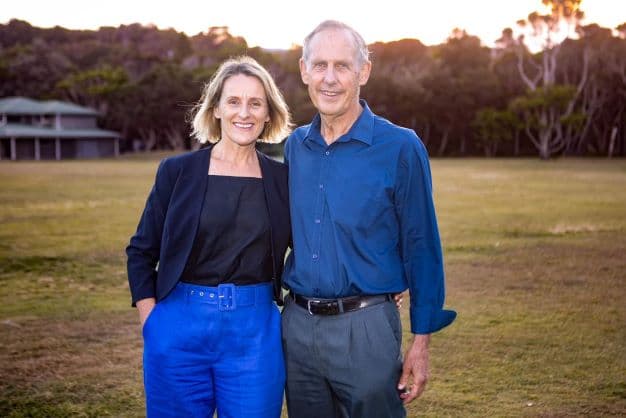 Image (L) dryland farmer Sue Higginson, (R) former Senator Bob Brown, NSW Greens, (FB)